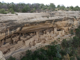 We zagen ronde kiva's waar hele gezinnen in woonden, voorraadtorens voor het voedsel dat ze verbouwden en 150 kamers waar mensen uit alle andere klifwoningen uit het Mesa Verde gebied bij elkaar kwamen. Dit moet dan ook de belangrijkste klifwoning geweest zijn in die tijd. De gebouwen waren destijds veel hoger, met houten daken, maar in de loop van de tijd zijn ze gedeeltelijk ingestort. Rond 1300 ontstond er grote droogte in het gebied en zijn de Pueblo indianen weggetrokken op zoek naar een betere plek om te wonen. Vlak voordat we weggingen speelde de ranger nog een eeuwenoud lied op een fluit, kippenvel! Daarna klommen we via drie hoge ladders weer omhoog.