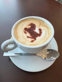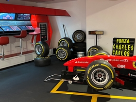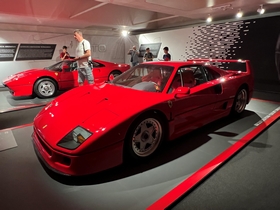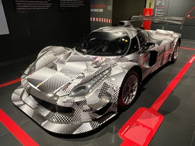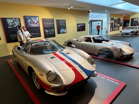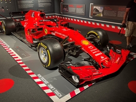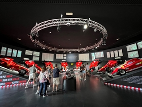 Eindelijk mochten we naar binnen. Wat een geweldige auto's staan hier. Vanaf de begintijd van Ferrari tot nu en natuurlijk ook de Formule-1 auto's. Er liepen ook een heleboel echte Ferrari fans rond, compleet in Ferrari tenue. Zij bekeken echt ieder detail van de auto's. Dat deden wij niet, maar ook wij vonden het prachtig om te zien allemaal. Nadat we alles op ons gemak bekeken hadden gingen we in het bijbehorende café een cappuccino drinken. In het melkschuim werd het logo van Ferrari gemaakt. Grappig en de koffie was ook nog erg lekker.