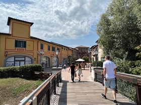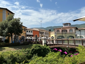 We waren nog te vroeg om naar het volgende appartement te gaan. Daarom gingen we eerst nog naar de Barberino Outlet vlakbij Bologna. Wat een mooi aangelegde outlet was dit. Helaas met niets van onze gading. We aten er voor de lunch wel een lekkere hamburger en daarna gingen we weer op weg. Was de weg vanaf Peschiera eerst nog saai en vlak, nu zagen we de Toscaanse heuvels opdoemen. Via een heleboel tunnels kwamen we steeds dichterbij dit mooie landschap.
