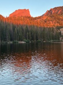 Door het tijdverschil waren we weer vroeg wakker en daar maakten we dankbaar gebruik van. In het donker reden we weer naar het Rocky Mountain NP en namen daar de afslag naar Bear Lake. Zo kwam het dat we om 5.45 uur al zaten te ontbijten aan dit meer. Niet het allermooiste meer, maar we hebben weleens op vervelendere plekken ontbeten.
