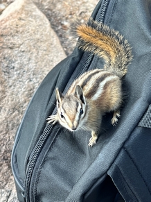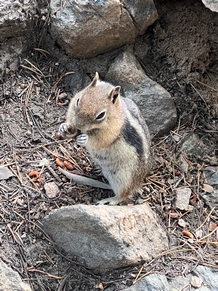 Daarna was het tijd voor een pittige wandeling langs nog drie meren. Dat viel nog niet mee, omhoog klimmen in die ijle lucht, maar wat was het hier mooi. Eén van de mooiste wandelingen die we ooit gedaan hebben. Als eerste kwamen we bij Nymph Lake, een sprookjesachtig meer vol met waterlelies. Na weer een flinke klim kwamen we bij Dream Lake. Het venijn zat hem in de staart, maar na nog een pittige klim kwamen we bij het laatste meer, Emerald Lake. Dit meer deed met zijn groene kleur zijn naam eer aan en omgeven door besneeuwde bergtoppen was ook dit weer zo'n ontzettend mooie plek. We bleven hier dan ook een tijdje zitten en aten intussen wat chipjes. Dat had een grondeekhoorntje ook al snel in de gaten. Hij kroop nog net niet in onze rugzak, maar we gaven hem toch maar niks, omdat dit ontzettend slecht voor ze is.