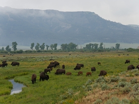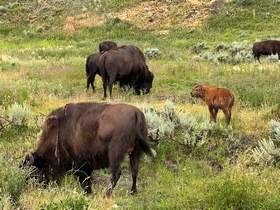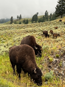Wat een geweldige dag hebben wij weer gehad vandaag! Om half acht reden we alweer de Lamar Valley van Yellowtone NP binnen. Al snel zagen we weer massa's bizons. Enorme stieren en moeders met kalfjes. Af en toe besloot er ook één om weer midden op de weg te gaan staan. Wat is deze vallei toch mooi, zeker in de ochtendnevel.