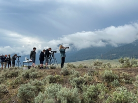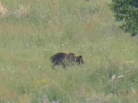Ineens zagen we allemaal mensen met telescopen op een heuvel staan. Snel klommen we de heuvel op en ja hoor, aan de overkant in de heuvels was een roedel wolven te zien. Wij mochten ook even meekijken op het schermpje van de telescoop. Wat ontzettend gaaf. Nog geen honderd meter verderop stonden weer allemaal mensen met telescopen. Deze keer waren er twee grizzlyberen te zien. Wel moeilijk te fotograferen, omdat ze zo ver weg waren, maar wat mooi om te zien. Ook hier mochten we weer meekijken door een telescoop. Wow, pas een uur in Lamar Valley en al zoveel wildlife gezien.